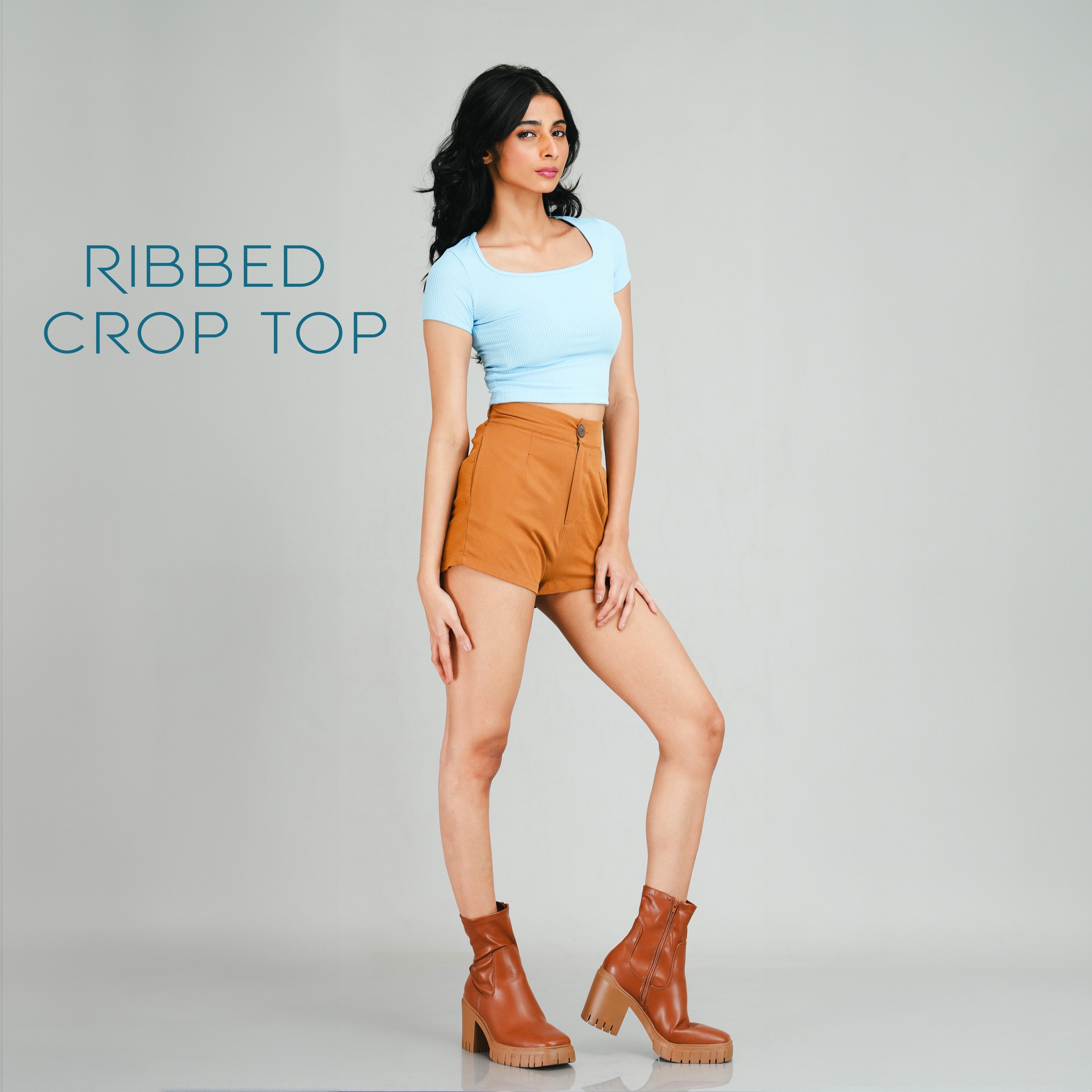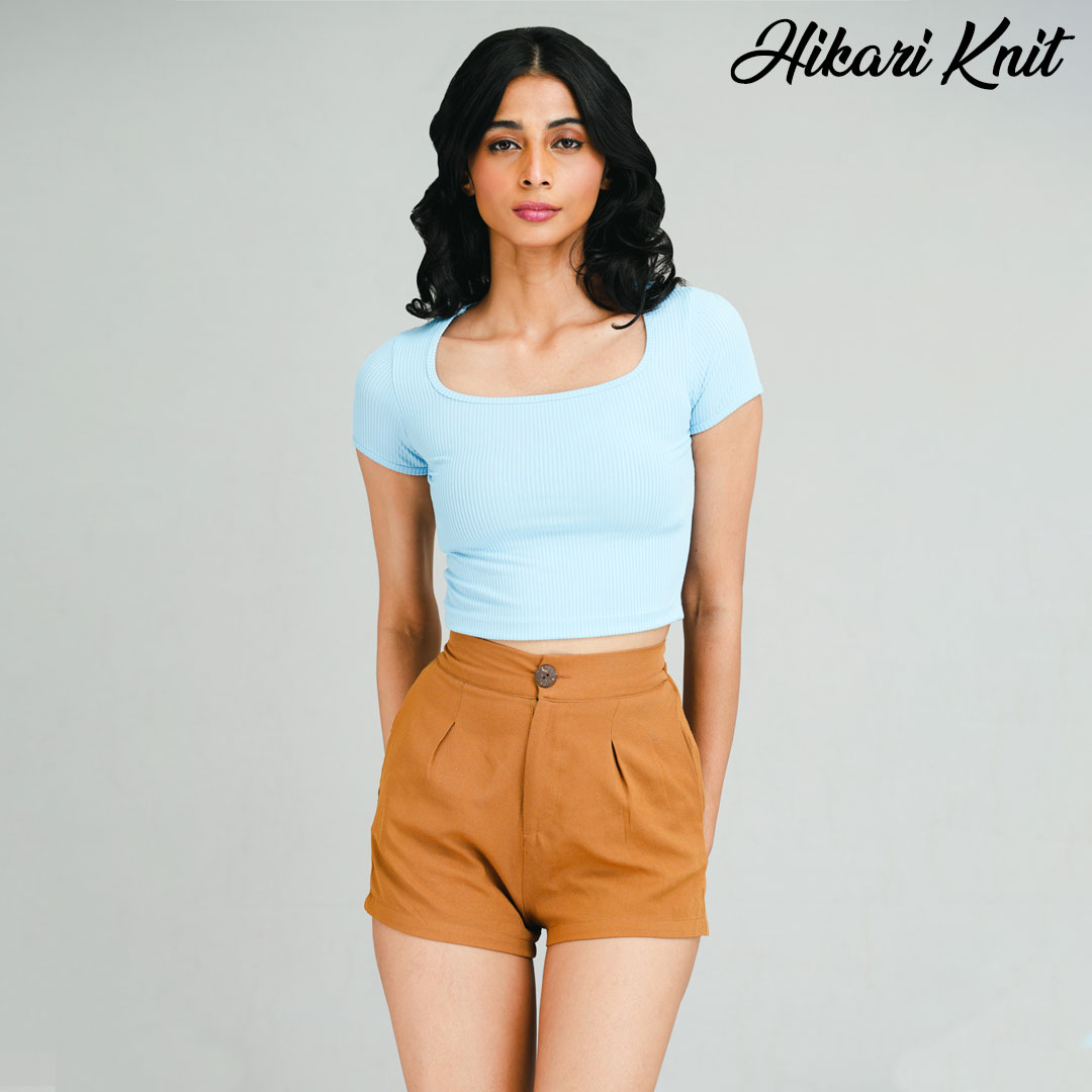 Delight in the blend of sophistication and coziness with our cotton Ribbed Square Collar Crop Top, a gem from the Hikari Knit Wear Collection.