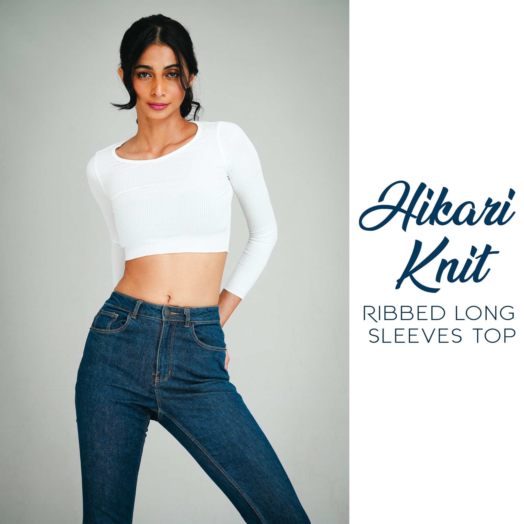 Fun and loving cotton Ribbed Long Sleeves Crop Top from our Hikari Knit Wear Collection.